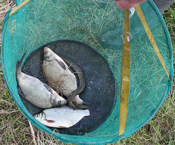Bunte Ausbeute; 2 Brassen, 1 Rotauge und 1 Aal. Im C-Sektor hatte ein Angler insgesamt 6 Aale gefangen.