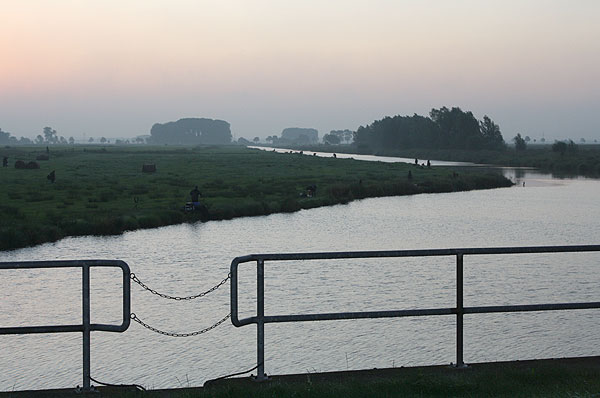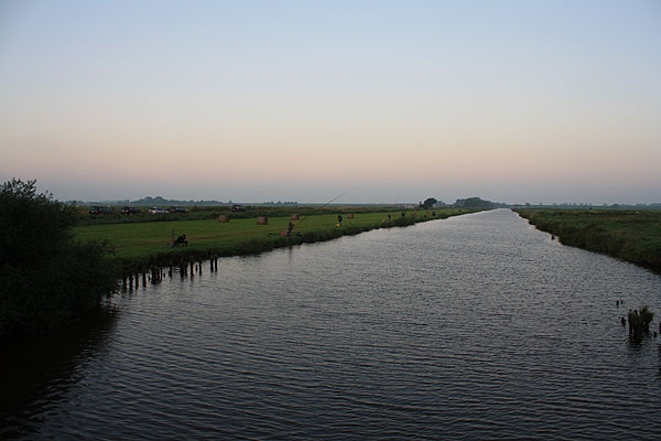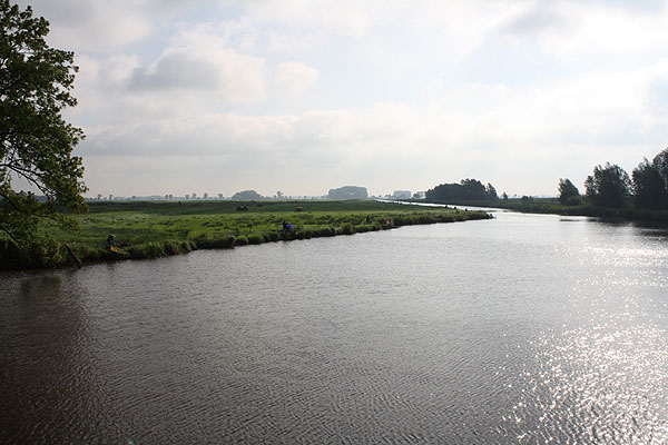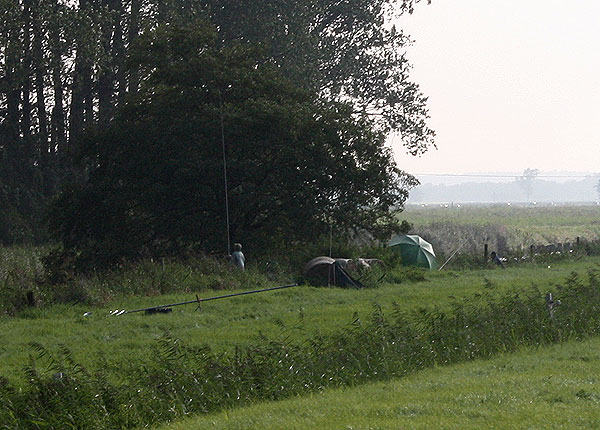Auf der Wiese vor der Brücke saßen auch ein paar Kopfrutenangler. Blick in Richtung Brücke.
