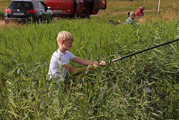 .. mal gucken was Nils gefangen hat; zwei dicke Brassen und Kleinfische waren dabei ..