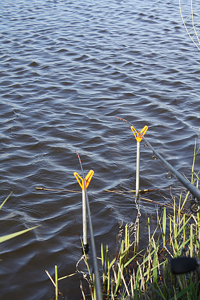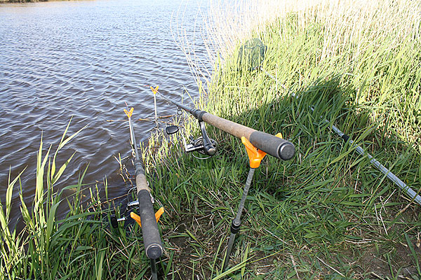 Picker- und Feederrute parallel zum Ufer ausgerichtet.