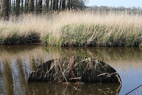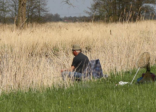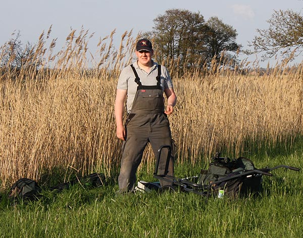 oben: von Björn Suhr schaut nur die lange Kopfrute aus dem Schilf;