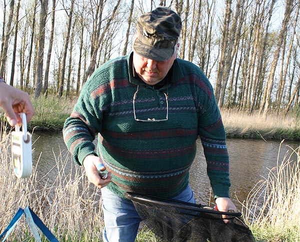 .. also taperten wir hoch zu Rolf um seinen Fang zu wiegen und alle auf dem Weg sitzenden Angler zu belästigen.