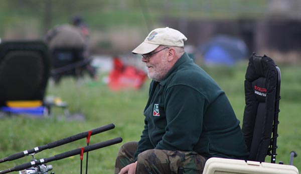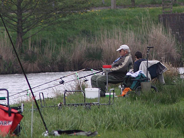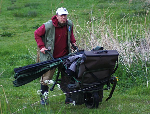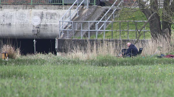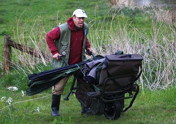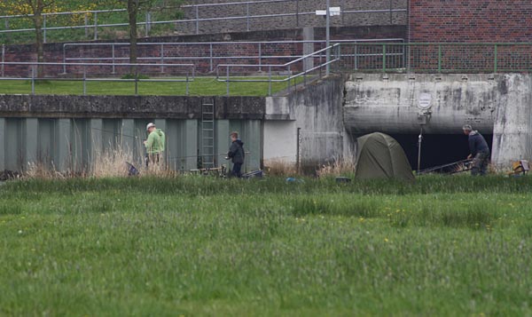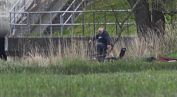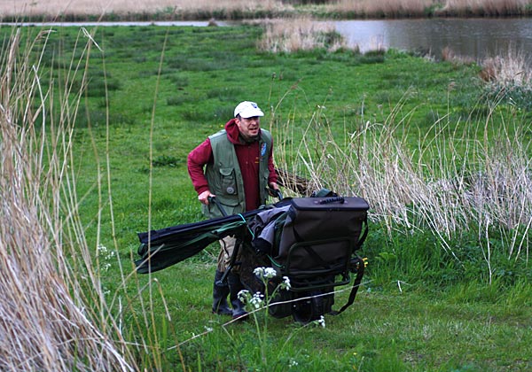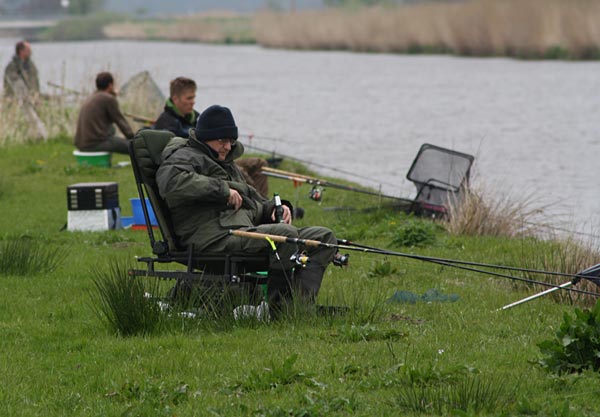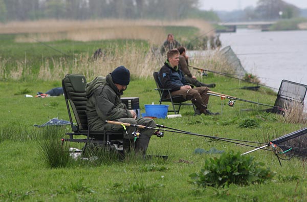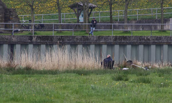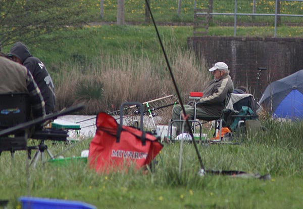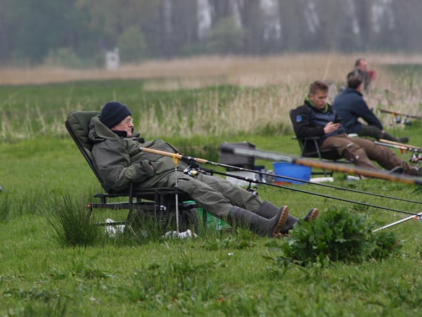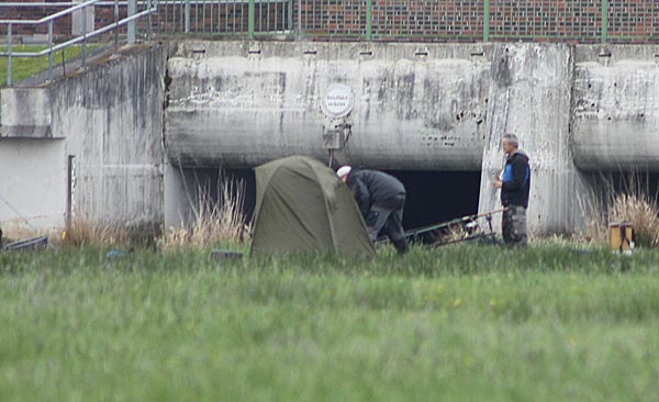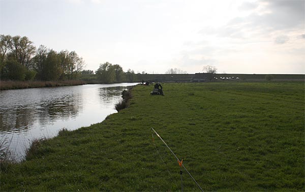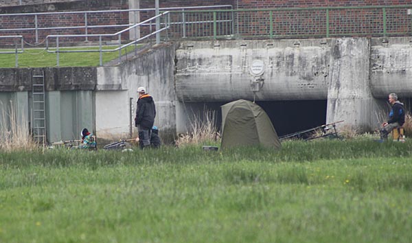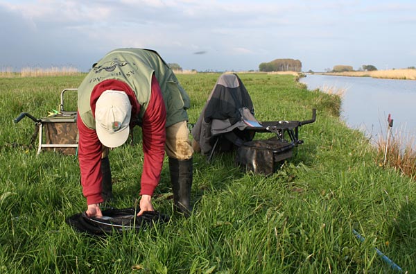 .. Jan mit Karpfenliege; hält den Wind gut ab ..