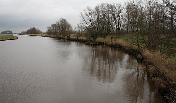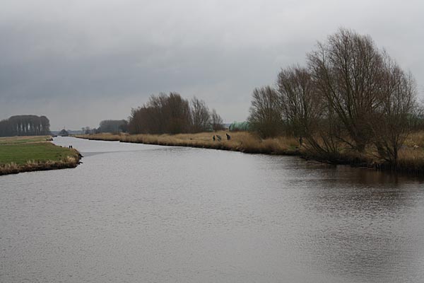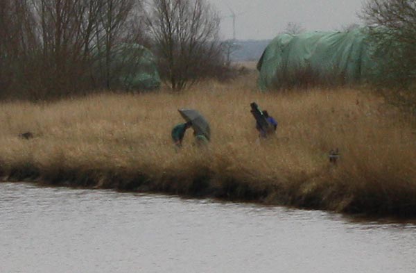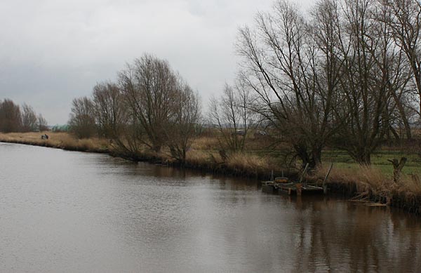 Das Schilf vom letzten Jahr, die Bäume und das am Straßenrand aufgeschichtete Reit boten wenigstens etwas Windschutz.